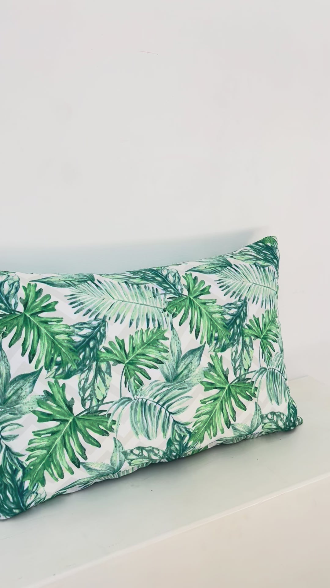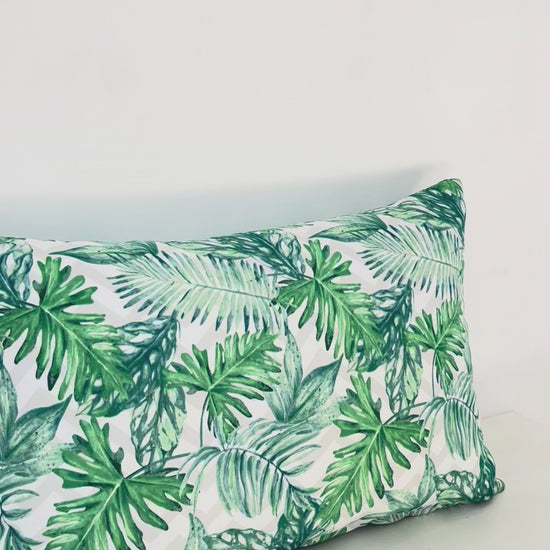 Bring a breath of the tropics into your home with this lush, leafy cushion. Featuring an array of green foliage on a subtle background, it adds a fresh, vibrant, and natural touch to any sofa or bed.